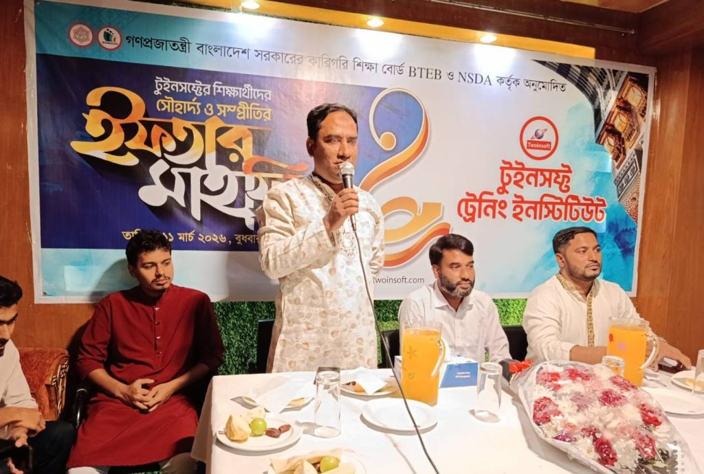 প্রানবন্ত আয়োজনে অনুষ্ঠিত হলো আজ ফেনী টাইমপাশ চাইনিজ রেস্টুরেন্টে গণপ্রজাতন্ত্রী বাংলাদেশ সরকারের কারিগরি শিক্ষাবোর্ড BTEB ও NSDA কর্তৃক অনুমোদিত প্রতিষ্ঠান টুইনসফ্ট টেকনোজীর শিক্ষার্থীদের নিয়ে সৌহার্দ্য ও সম্প্রীতির ইফতার মাহফিল।